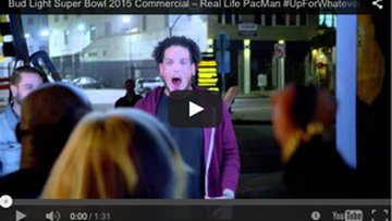 TAGS: Pac-Man, coin-op news, classic video game, Bud Light Super Bowl commercial, Up For Whatever, Energy BBDO, Mosaic marketing, Pac-Man maze Anyone…