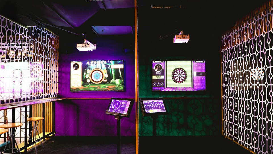 501 Entertainment's Smarts Darts Interactive delivers a pub darts experience enhanced with video game components. With steel-tipped darts and a commercial-grade physical dartboard, Smart Darts Interactive delivers automated scoring and presents graphics on a TV screen.