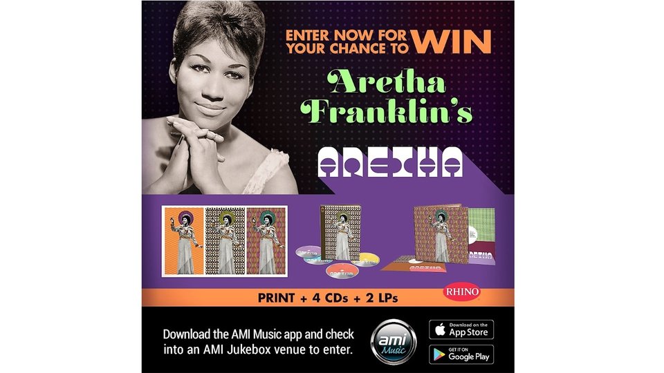 AMI jukeboxes will also feature an Aretha Franklin playlist with the biggest hits of her career. All are encouraged to check out the playlist and enter the contest using the AMI music app or by visiting an AMI jukebox.