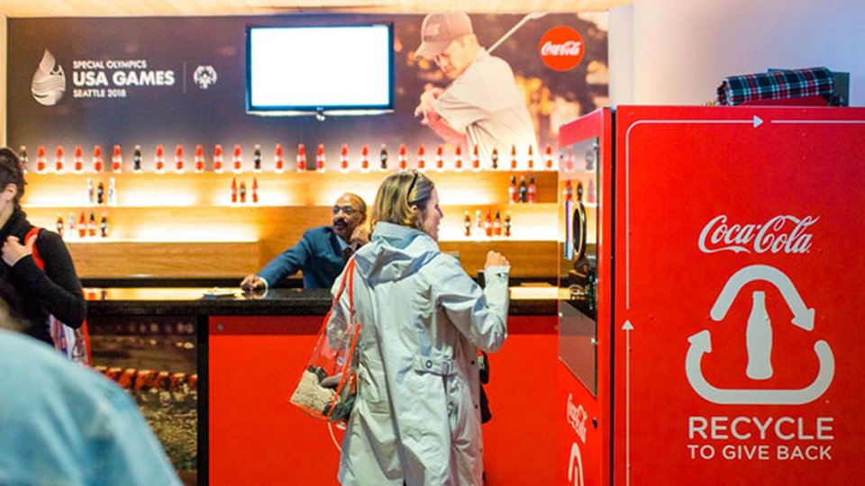 SEATTLE -- Coca-Cola Co. incentivized recycling at the 50th anniversary 2018 Special Olympics USA Games through reverse vending machines that let fans give back in more ways than one. The event took place here July 1 through 6.