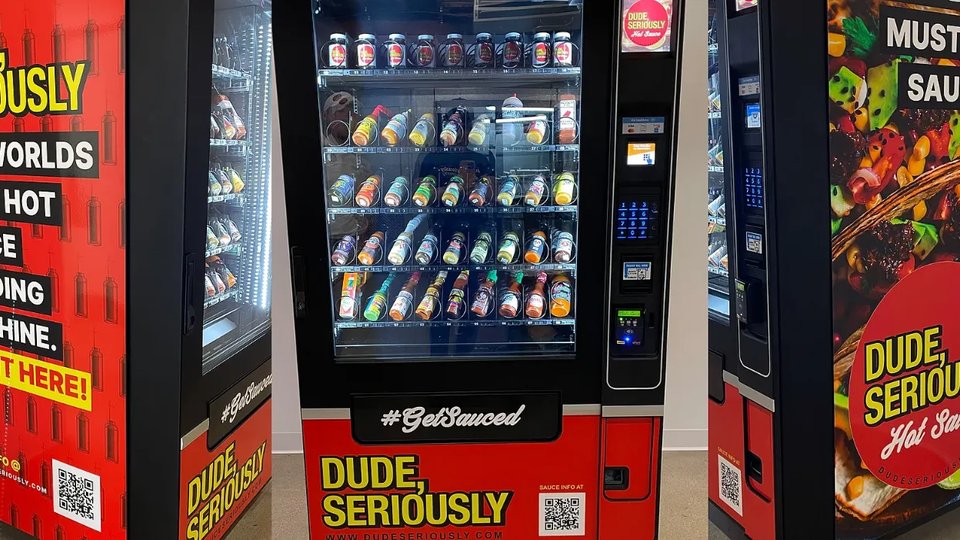 Dude, Seriously LLC, the company that created Dude, Seriously Hot Sauce, has introduced what it claims is the world's first hot sauce vending machine, according to a press release. The company plans to roll out over 100 hot sauce vending machines to cities across the country with the first machine debuting at the Oakley Kitchen. This Cincinnati food and drink destination features eight restaurant concepts, a cocktail bar and bottle shop, a local market and event space, as conceptualized by the Campfire Foods Group.