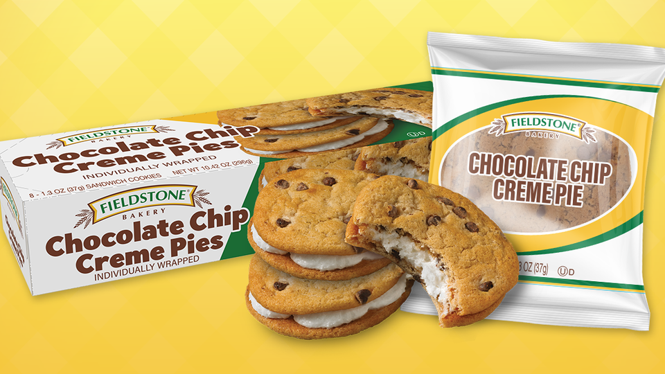 McKee Foodservice has launched a product under its Fieldstone Bakery brand: Chocolate Chip Creme Pies, now available nationwide. The product features a layer of sweet creme sandwiched between two soft chocolate chip cookies, offering a new variation on a familiar snack. Each serving is 1.3 ounces and comes individually wrapped, with products sold in cases of 128, according to a press release.