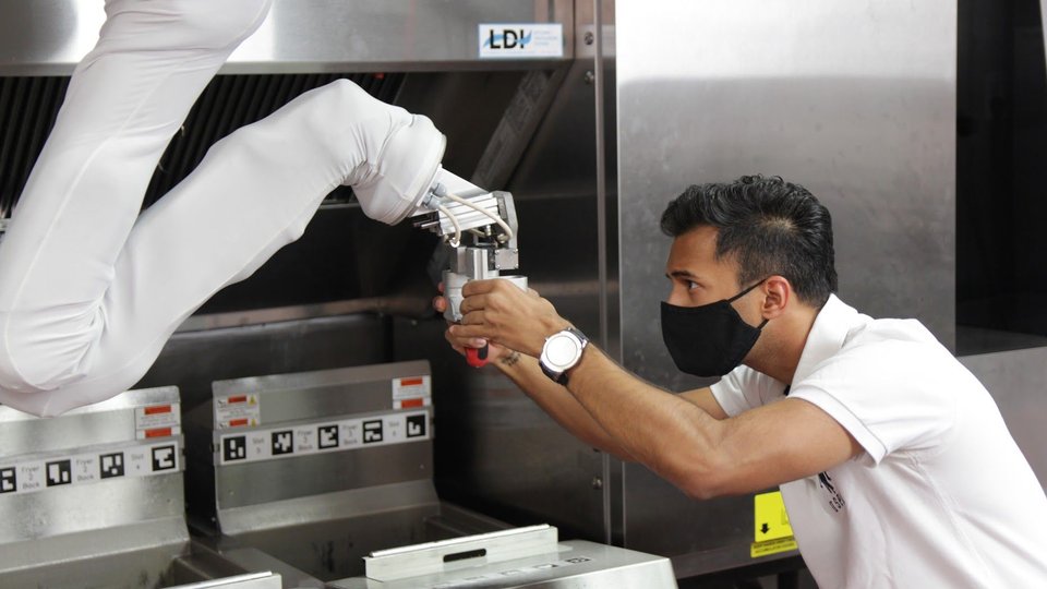 ChefUI can not only identify food and temperatures, but can also learn and reclassify new foods introduced to Flippy. Staff can also opt to change cooking times and alter portion sizes for foods coming out of the hopper to map back to customer customization requests.