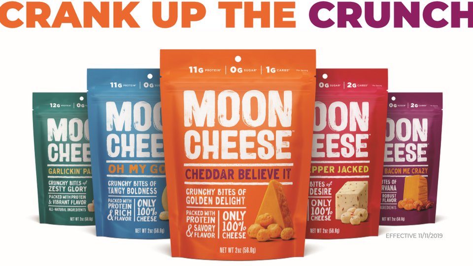 Moon Cheese from NutraDried LLC offers an all-natural cheese snack in resalable, 2-ounce single-serve bags that don't require refrigeration, according to a press release. The gluten- and sugar-free product has the moisture sucked out of it to make it shelf-stable.