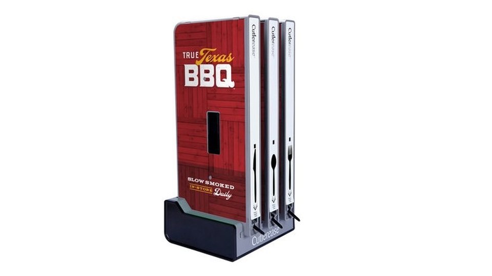 Novolex can now offer customers the opportunity to lease or buy Cutlerease dispensers. The system cuts waste, reduces the spread of germs, saves space and provides guests with a more convenient way to get utensils.