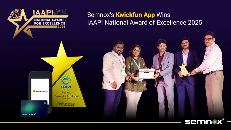 Semnox Solutions has received the IAAPI National Award of Excellence 2025 for New Product Innovation for its Kwickfun App, according to a press release. The award, presented by the Indian Association of Amusement Parks and Industries, recognizes the company's innovation in the amusement industry.