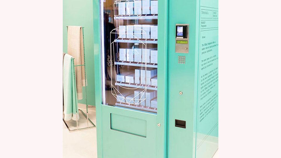 Tiffany & Co.'s latest shopping innovation in its London store lets visitors purchase the its new fragrance from a blue Tiffany vending machine.