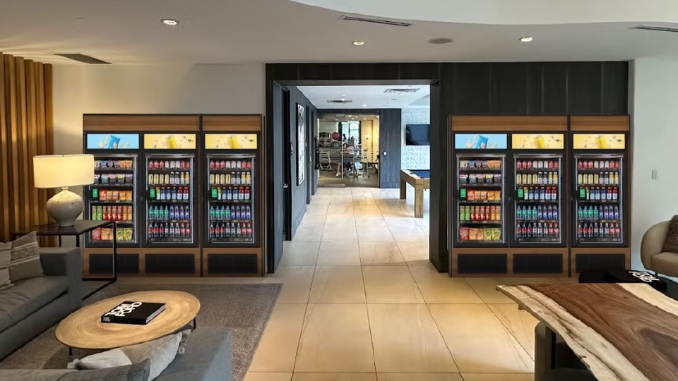 The Smart Store Coolers are designed for integration into common areas such as lobbies, mail rooms, fitness centers and leasing lounges. Residents can access items by tapping a card or digital wallet, with AI sensors automatically tracking purchases and processing payments upon door closure.