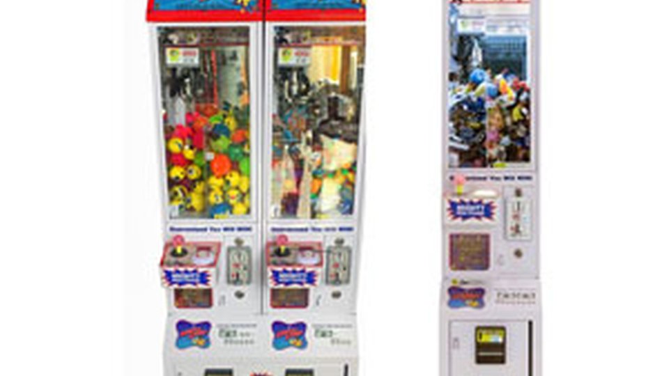 DUAL MIGHTY MOUSE MINI CRANE LAS VEGAS, NV -- Making its debut at this year's Amusement Expo International here is a slimline prize-every-time crane from WorldWide Video (San Diego, CA). The little crane, with a Mighty Mouse theme, is designed to appeal to children. The machine measures only 12" W. x 16" D. x 68" H.. It features tempered-glass construction with an extra-thick plexiglass prize door, and is supplied with two sets of brackets permitting it to be attached to a wall or to...